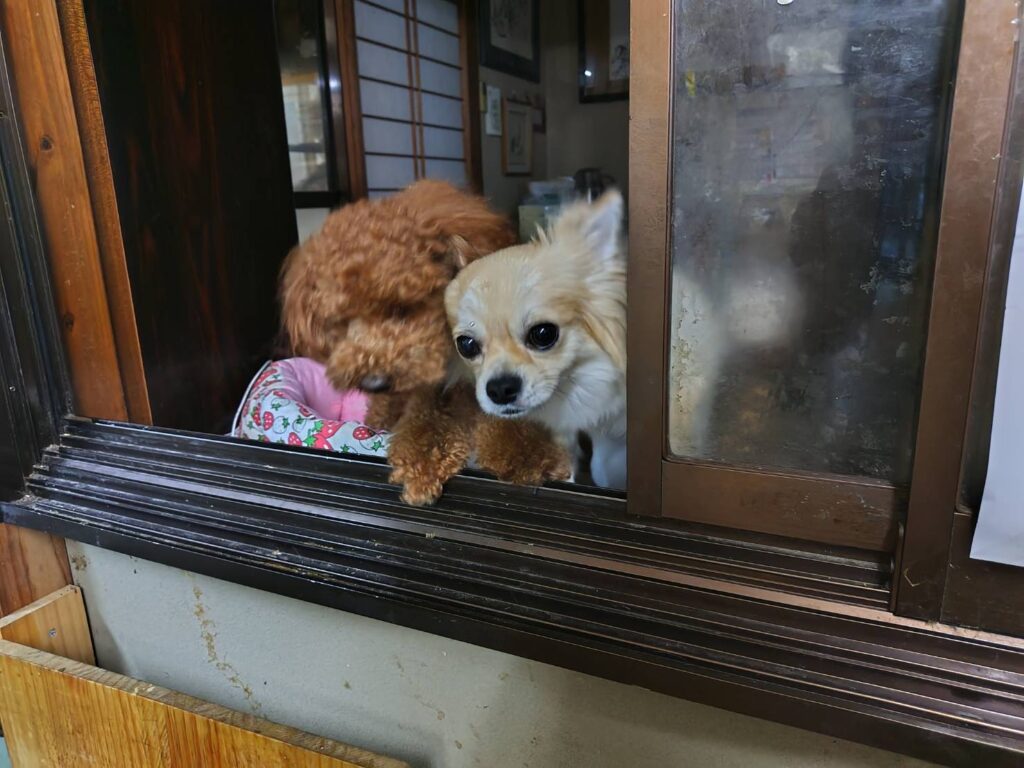店内に入ると出迎えてくれたのは、ポッキーとココちゃんでした。人懐っこくとてもかわいいわんちゃんです。