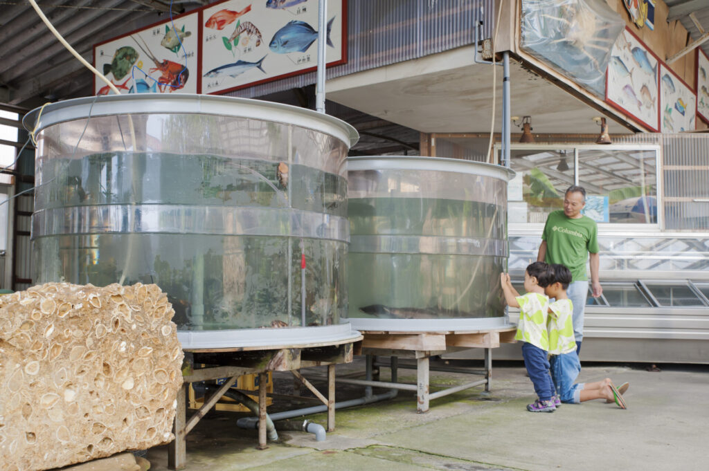 店内には大きな水槽が置いてあり魚が元気に泳いでいます。店外では大きな観葉植物があり落ち着いた雰囲気を出してくれます。