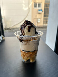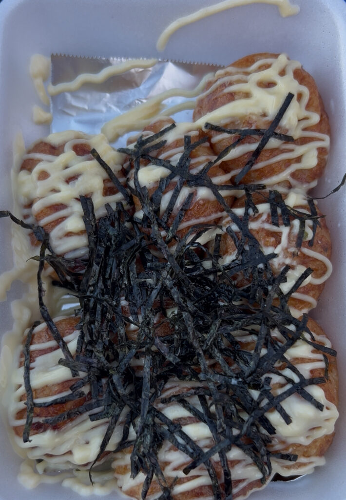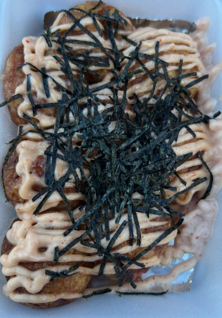 明太マヨたこ焼きと塩バターたこ焼きをいただきました。出来立てでとてもおいしかったです。